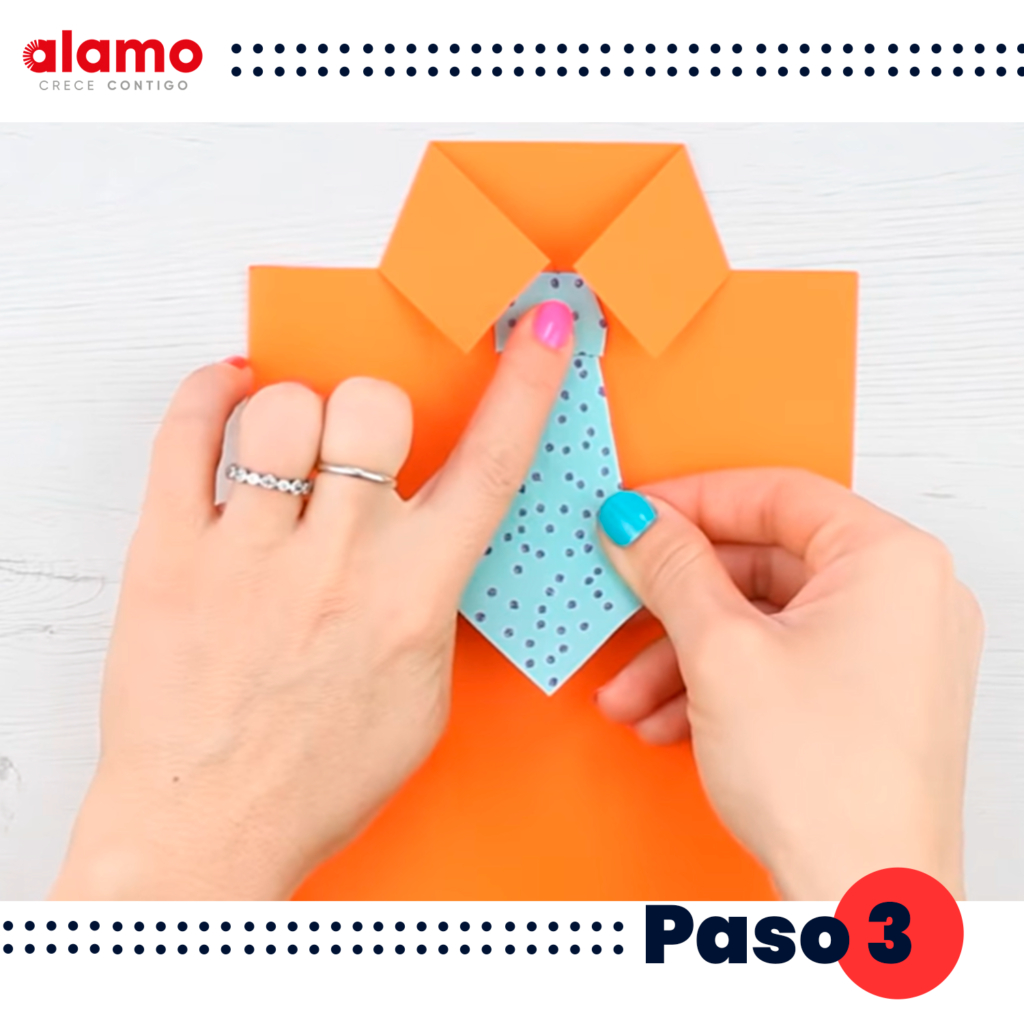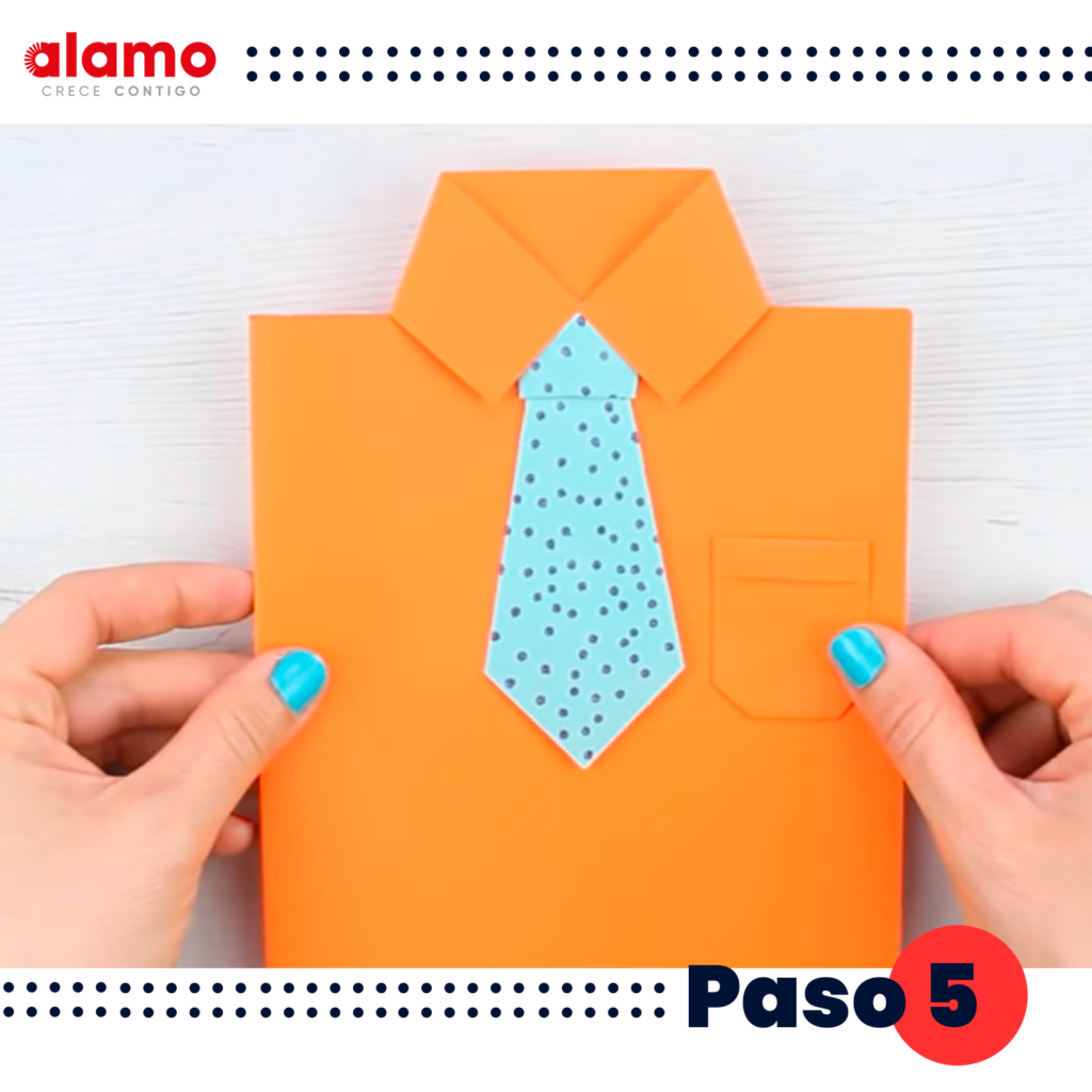 - Cortar un bolsillo del mismo color o a tono de la corbata y pegar en el lado izquierdo de la camisa